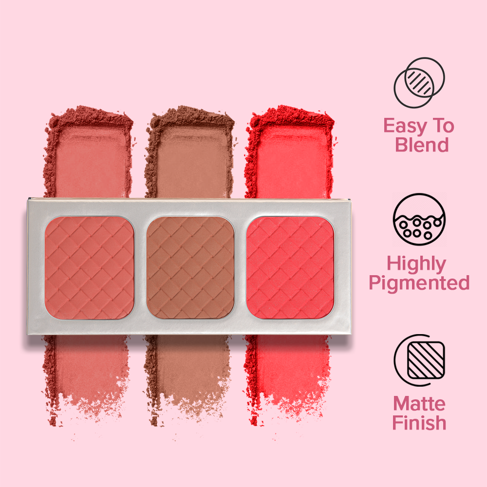 Character Go Blush palette consists of 3 matte and shimmery blush shades which come in 6 variants. These intensely pigmented powder blushers easily glide on giving you a natural finish. Suitable for all skin tones? YES, so grab yours now! Go blush with a natural flush!